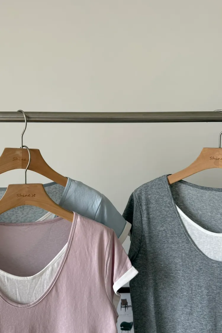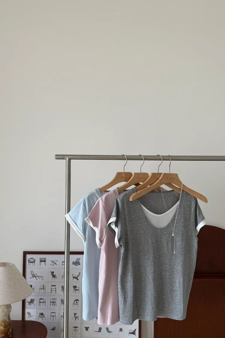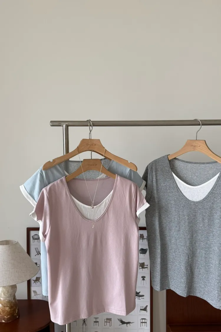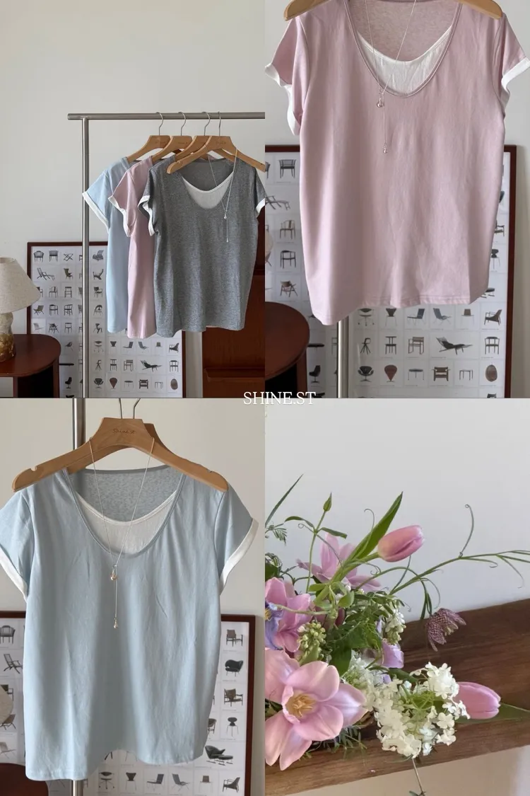 假兩件拼色棉T