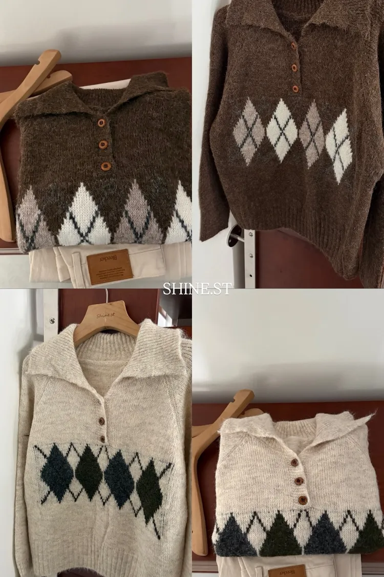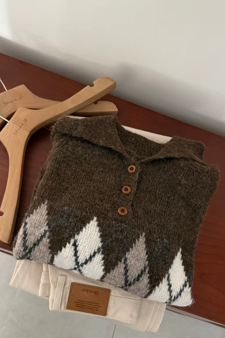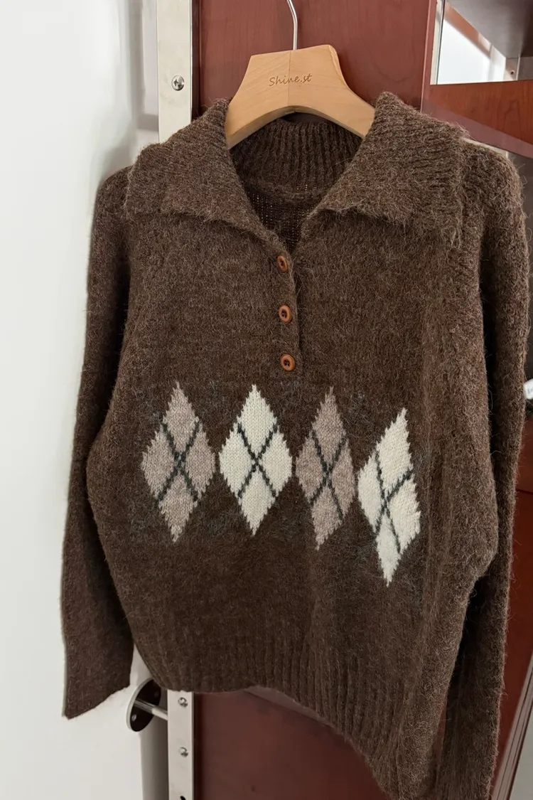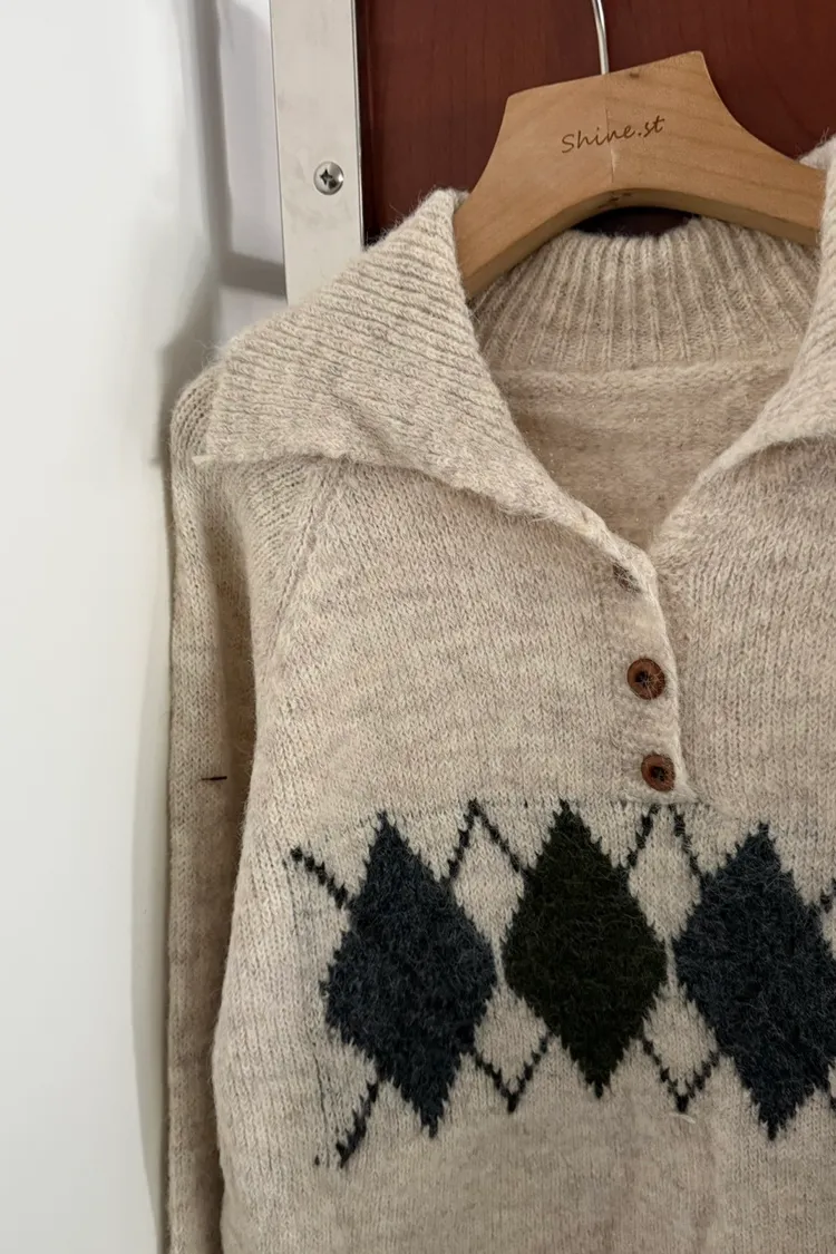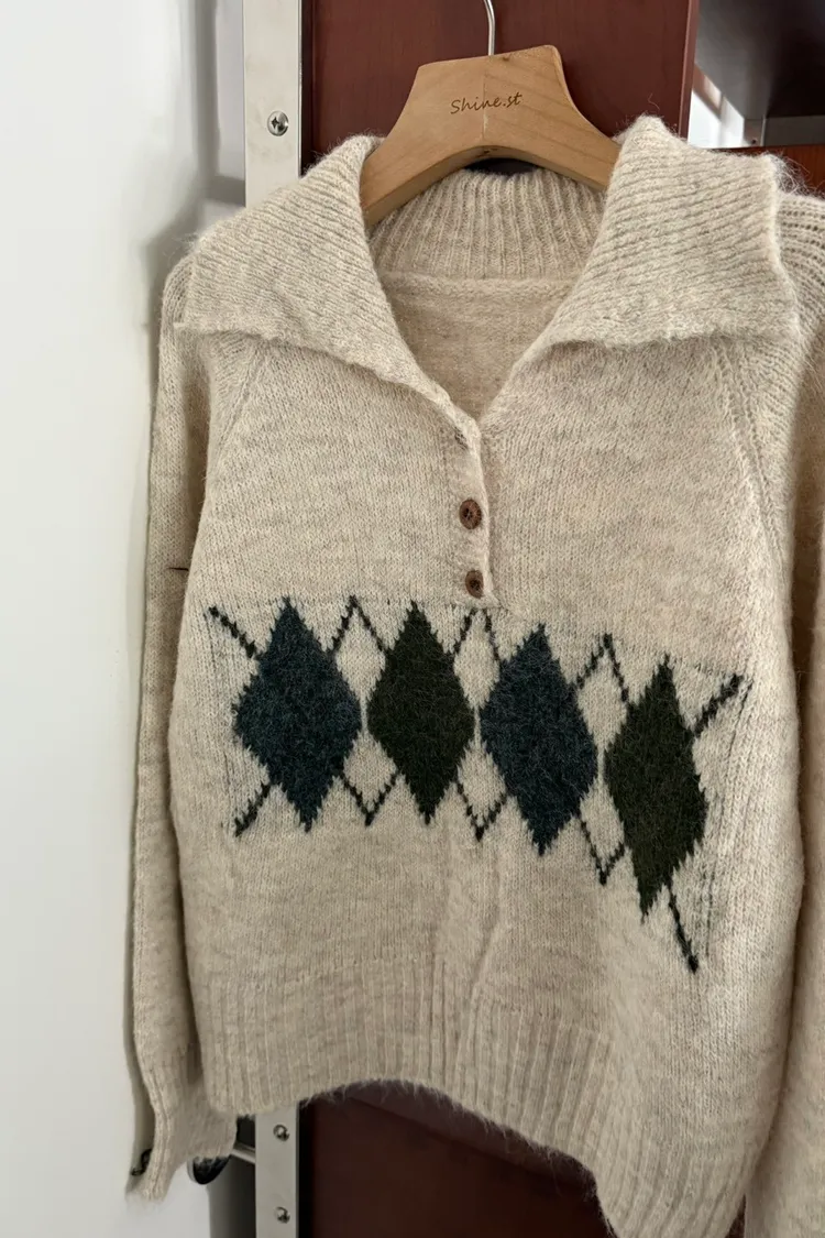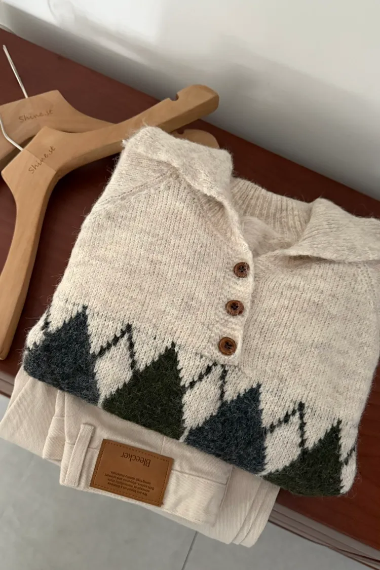 翻領圖騰毛衣