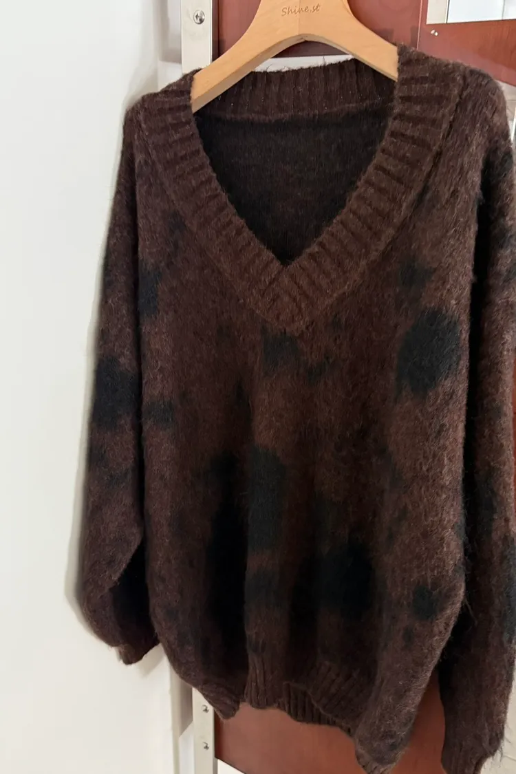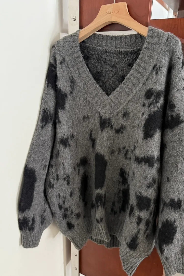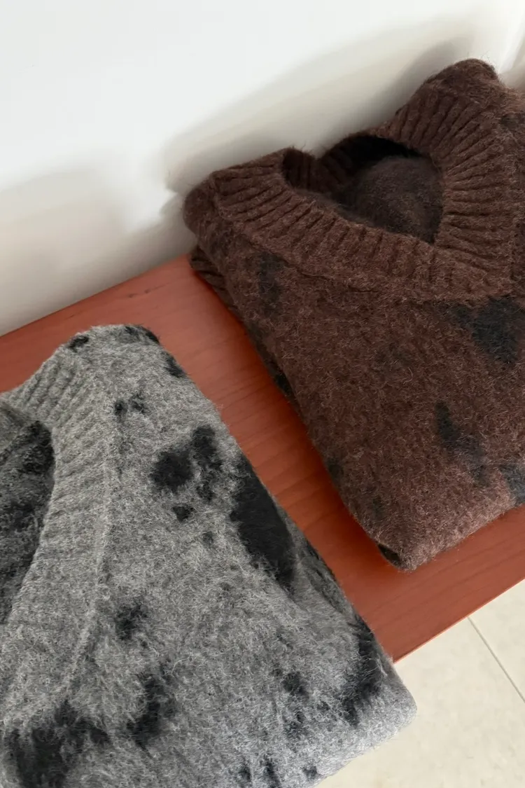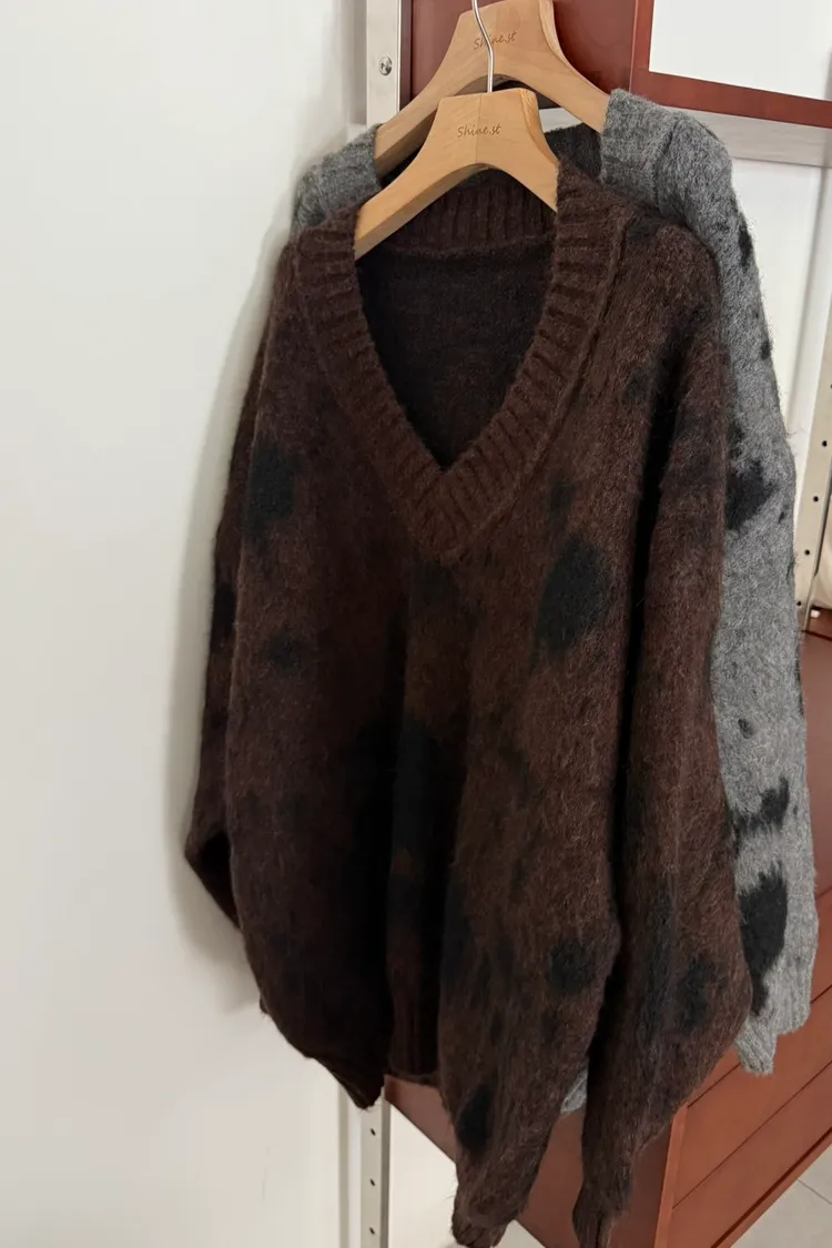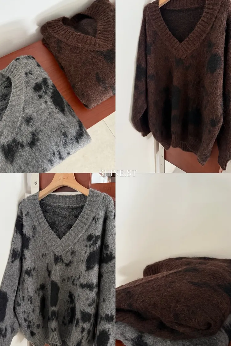 暈染微V毛衣