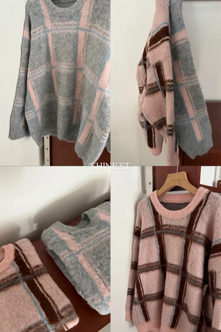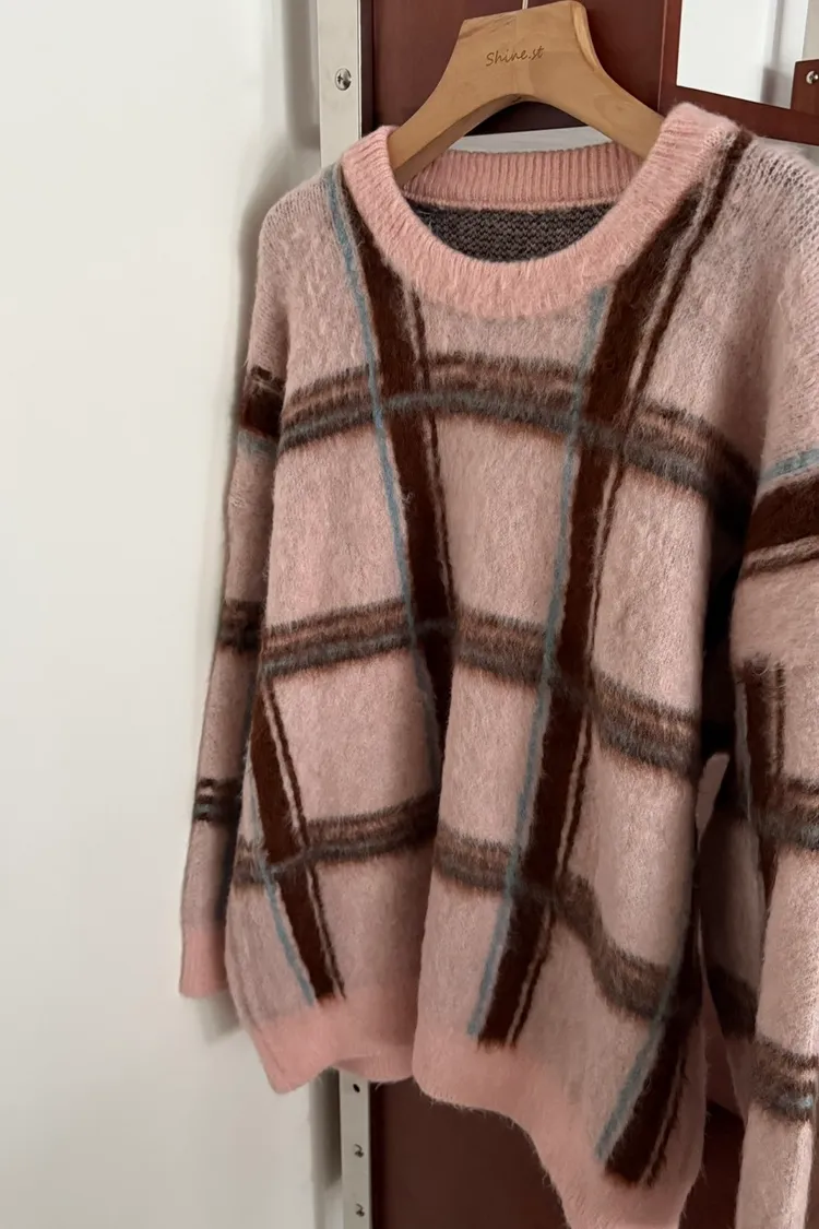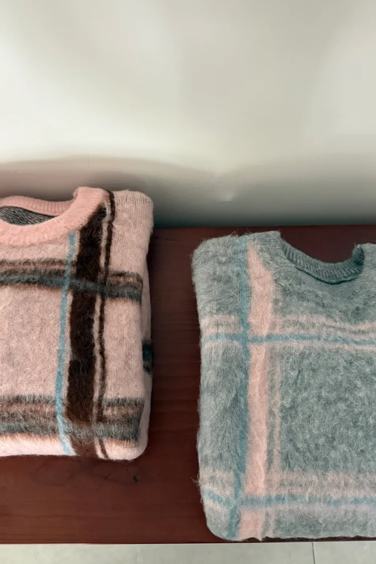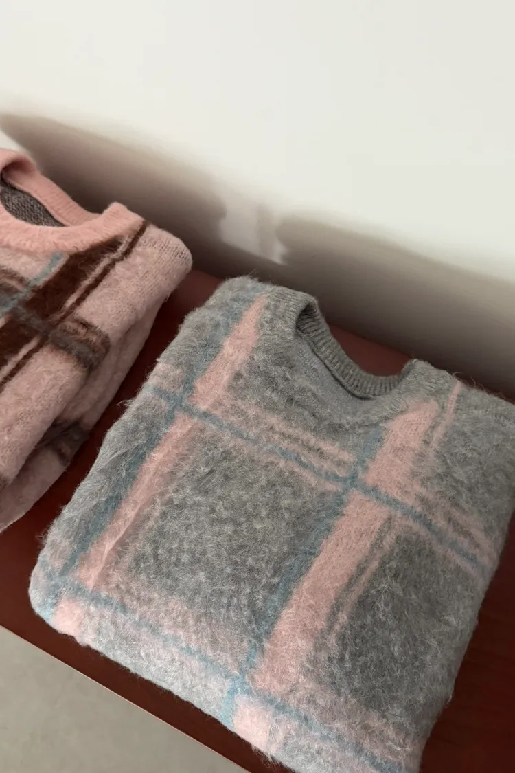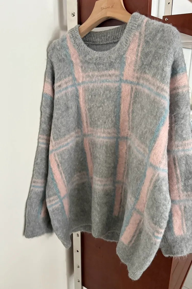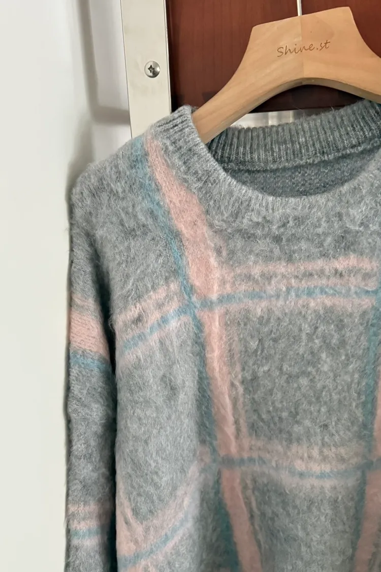 粉彩格毛衣