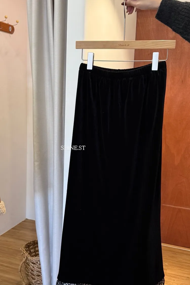 絨面下拼接蕾絲裙