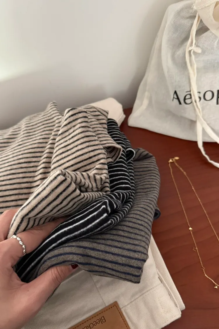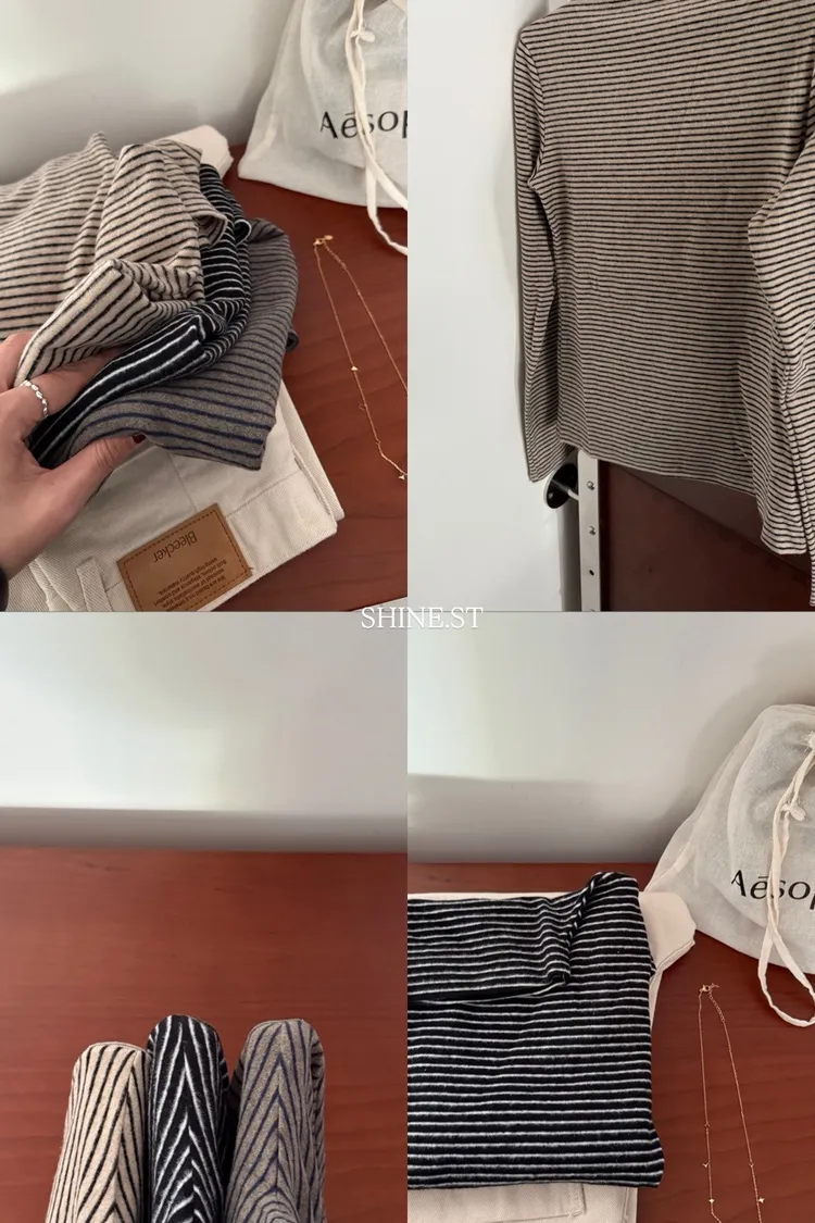 立領條紋內搭打底衣