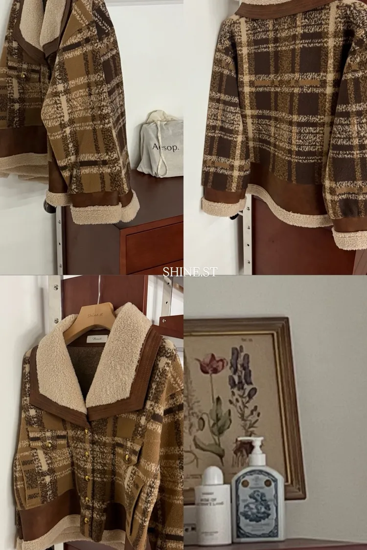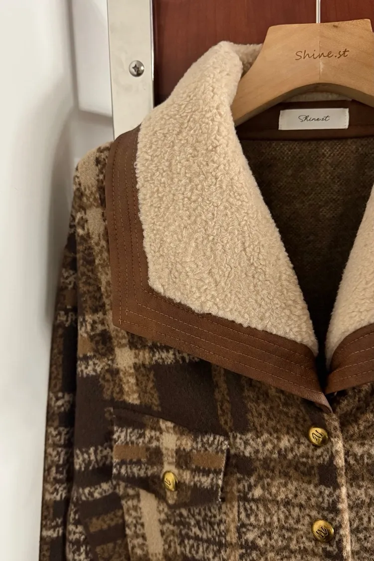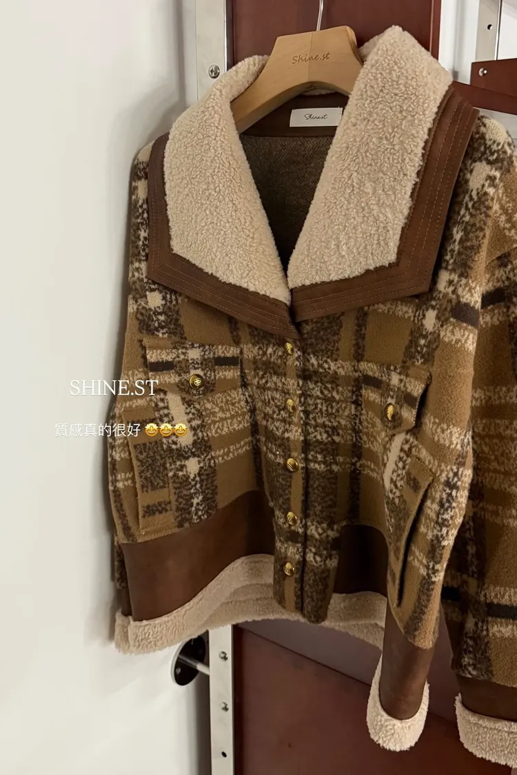 羊絨保暖格子外套