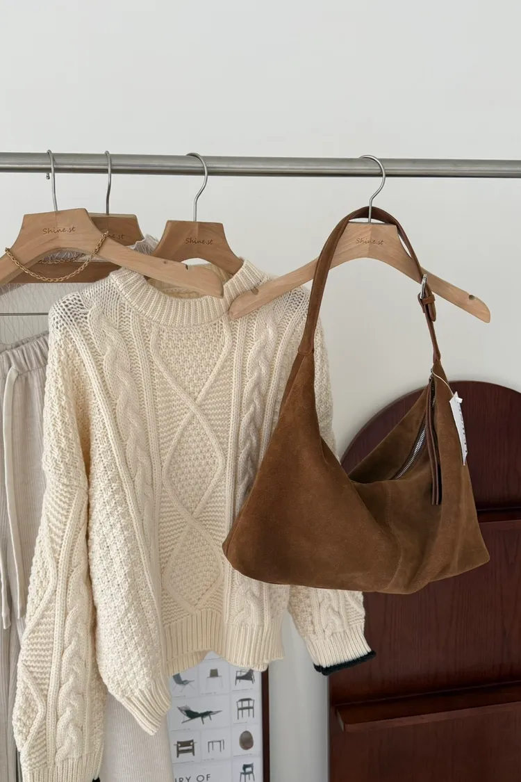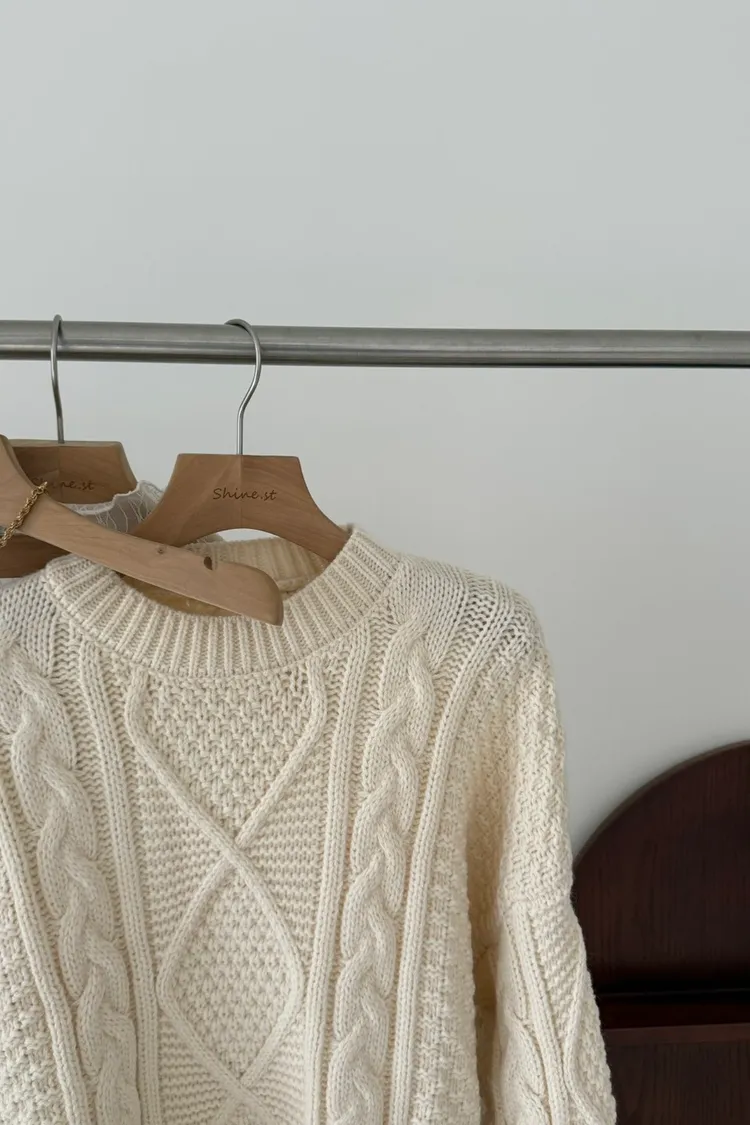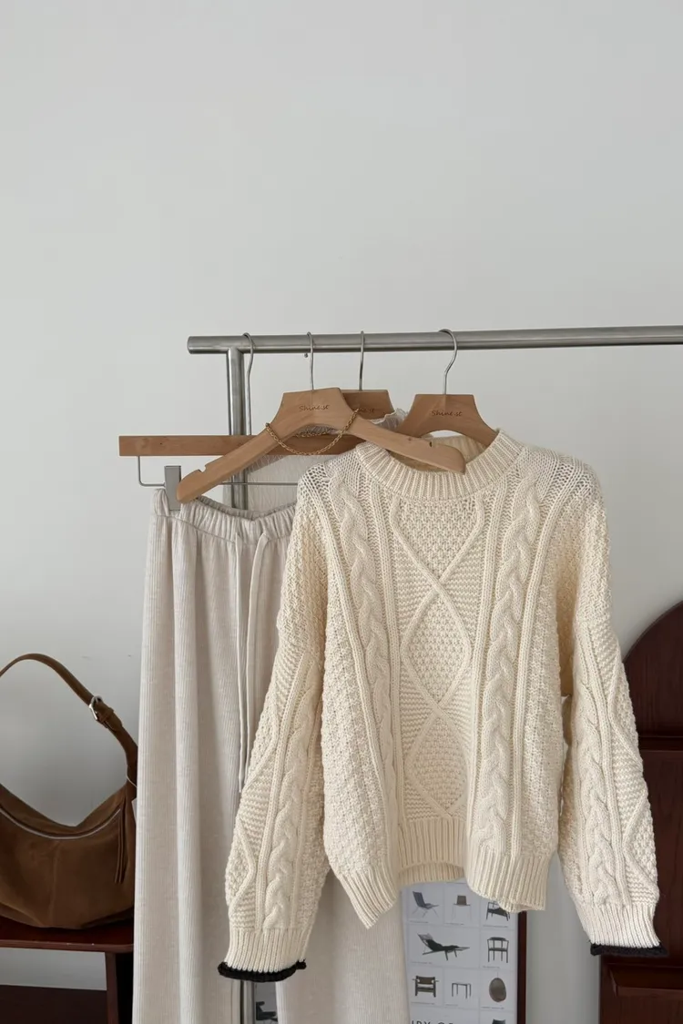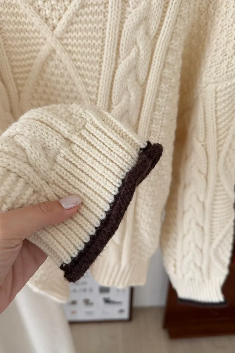 手袖撞色麻花毛衣