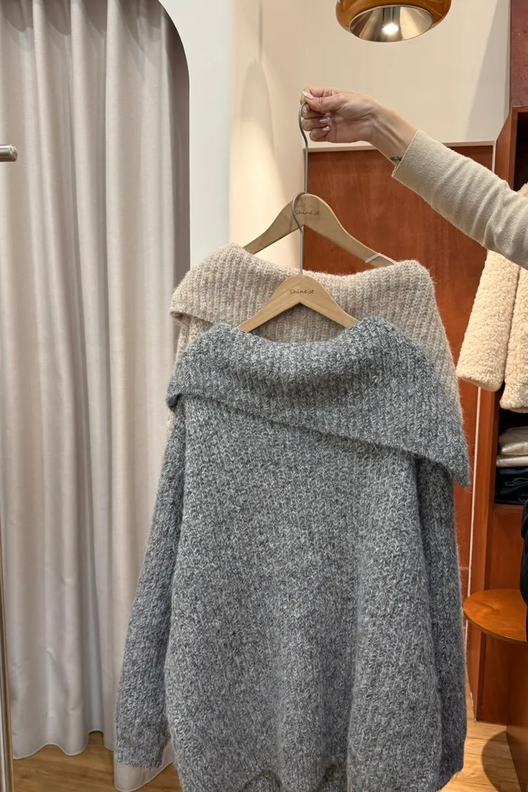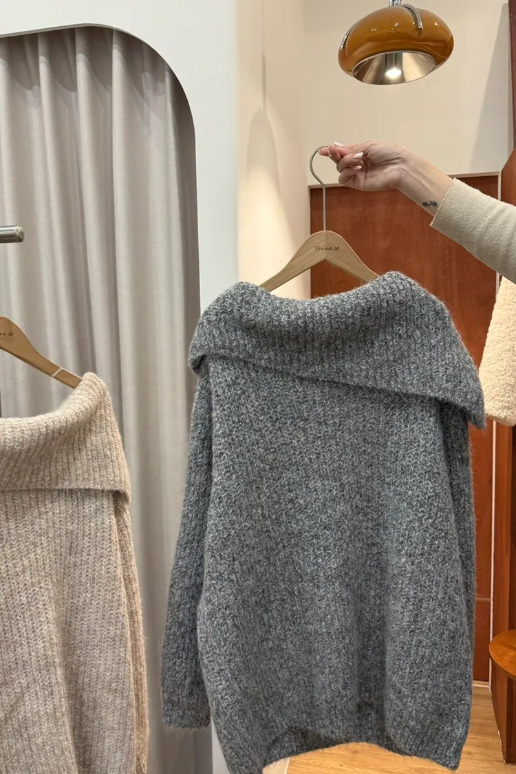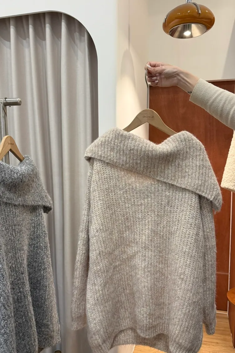 超美大翻領 長版毛衣