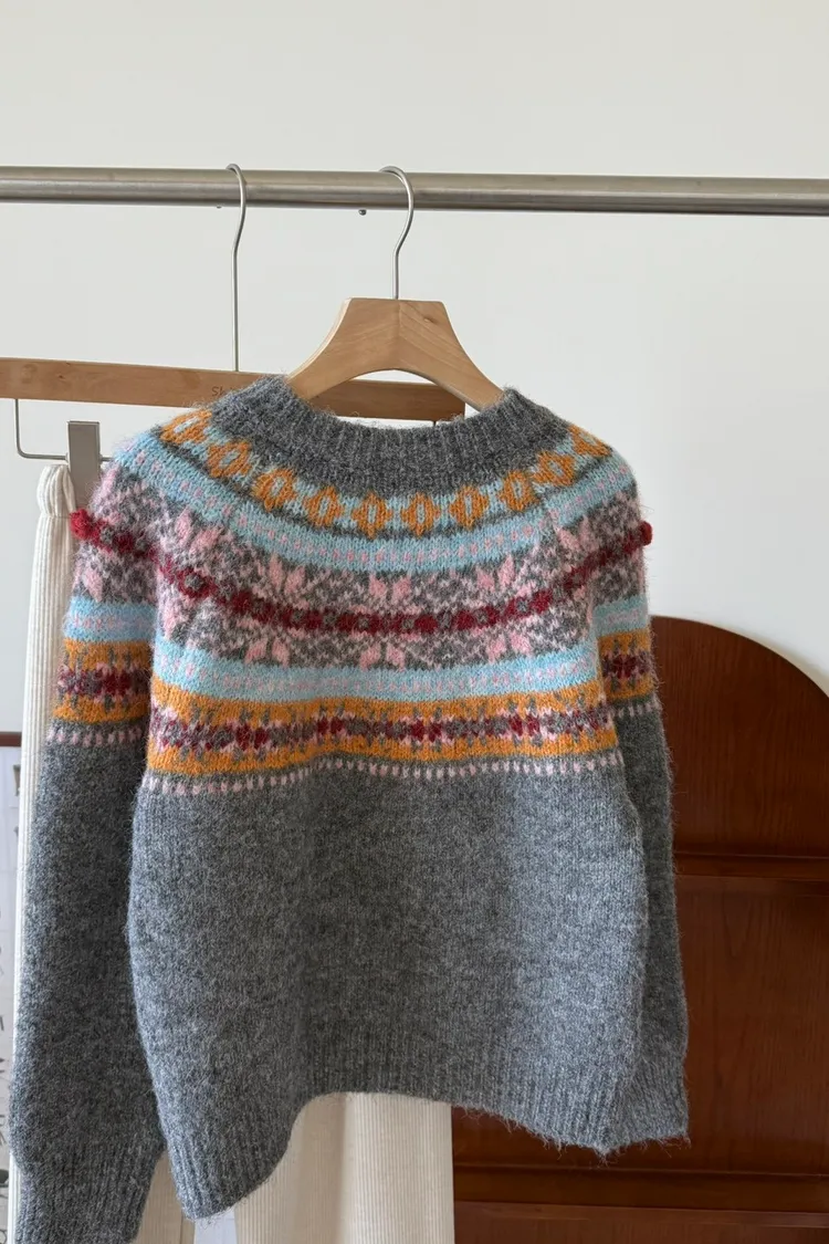 彩色花花球毛衣