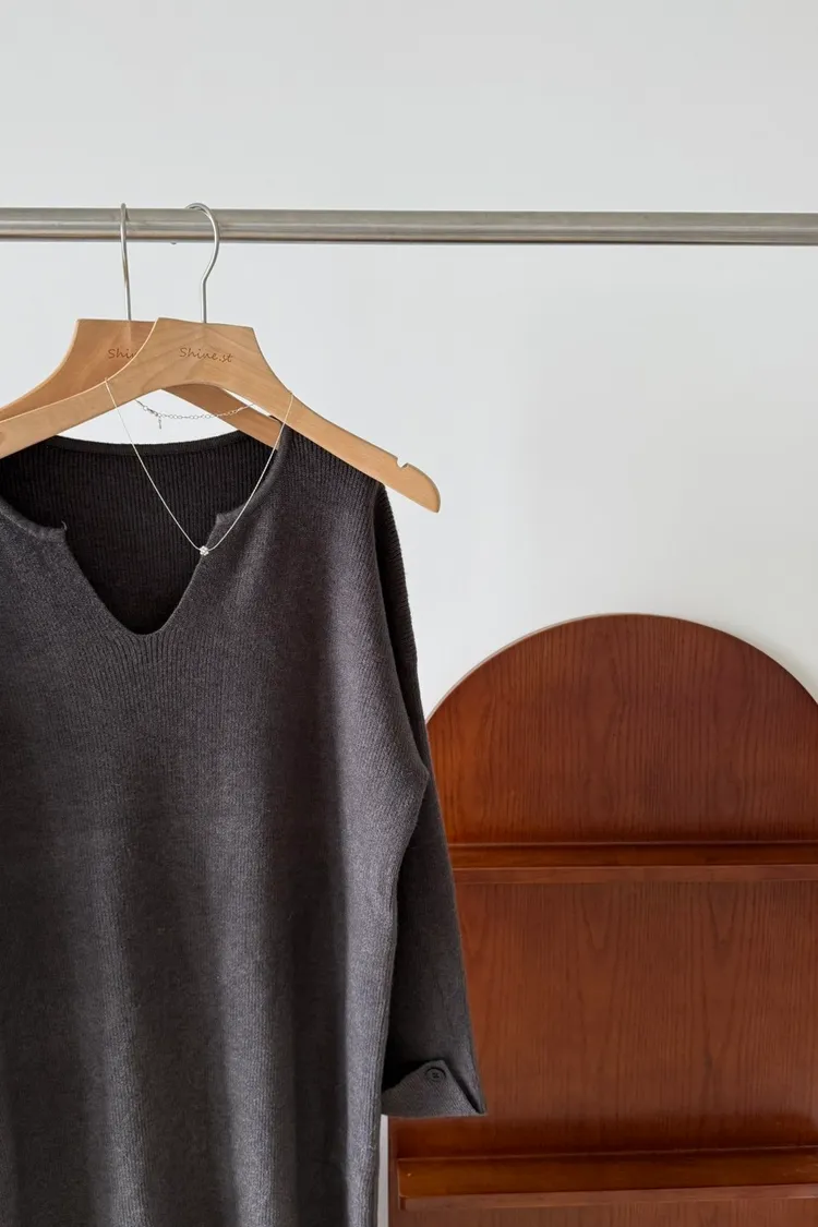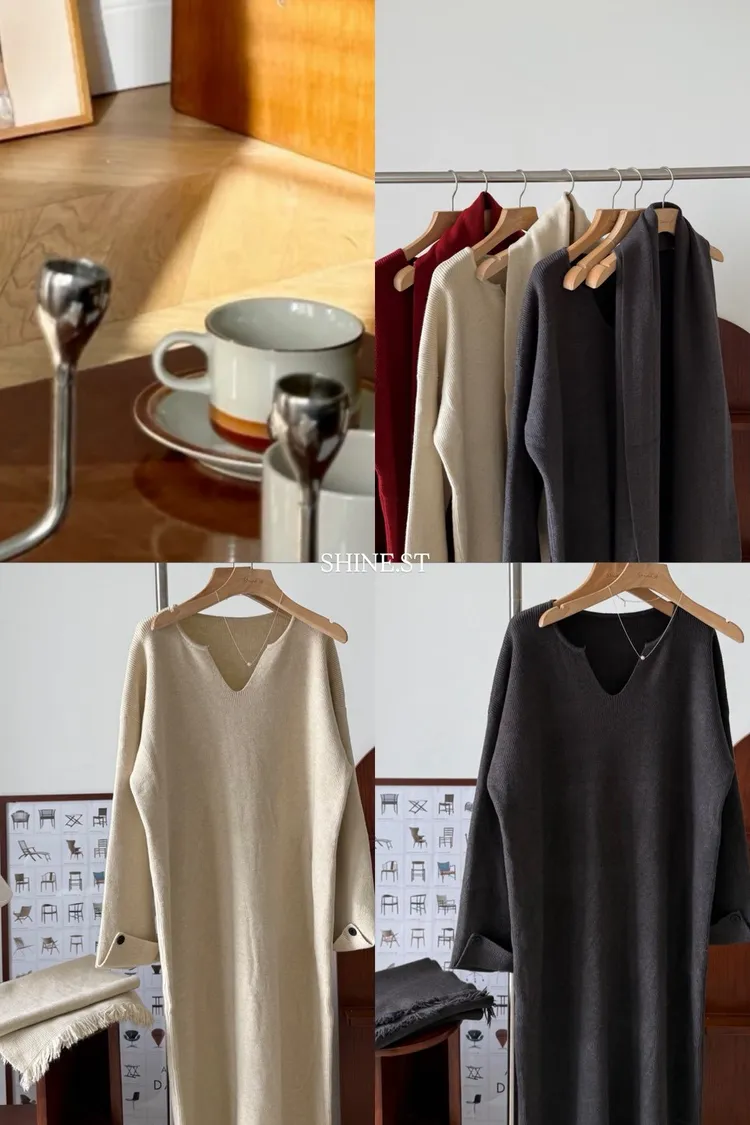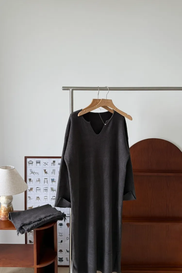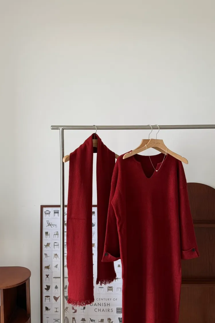 圍巾坑條寬鬆洋裝