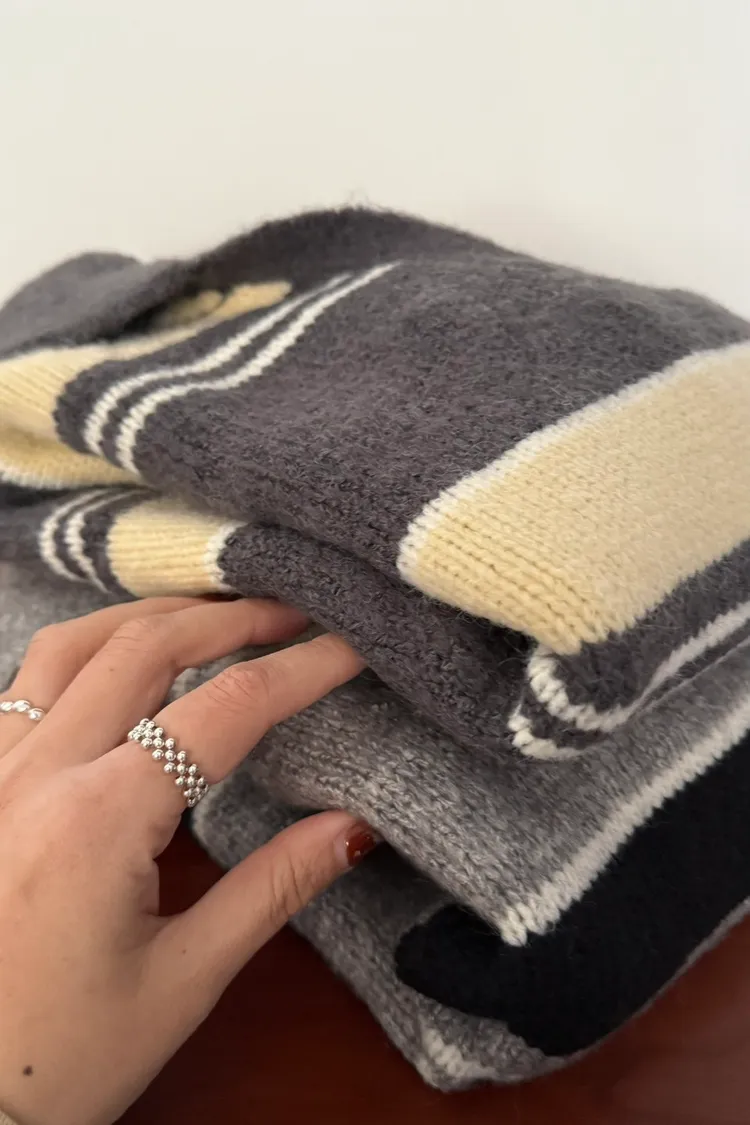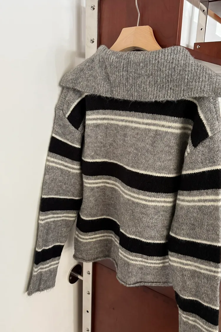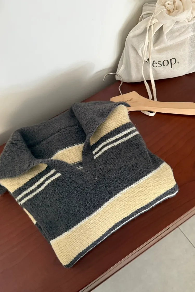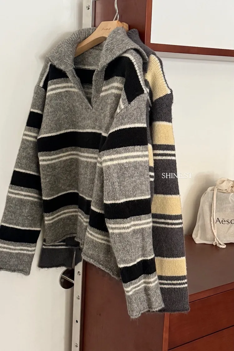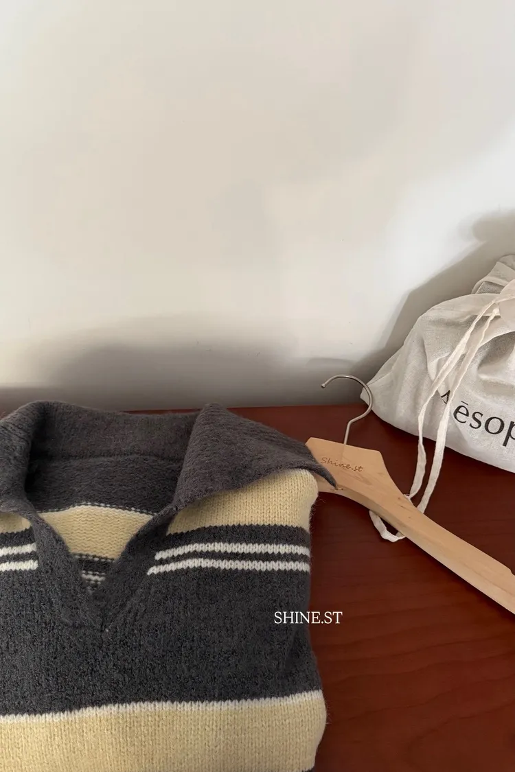 翻領小v條紋毛衣