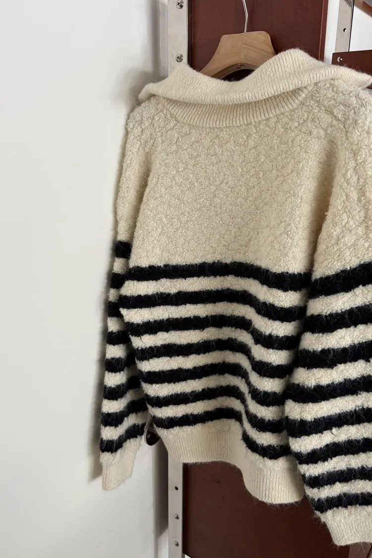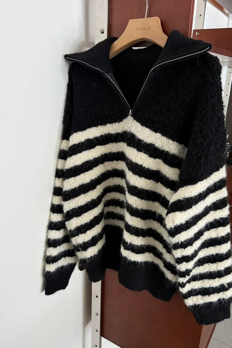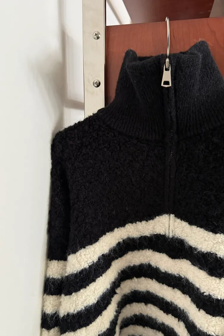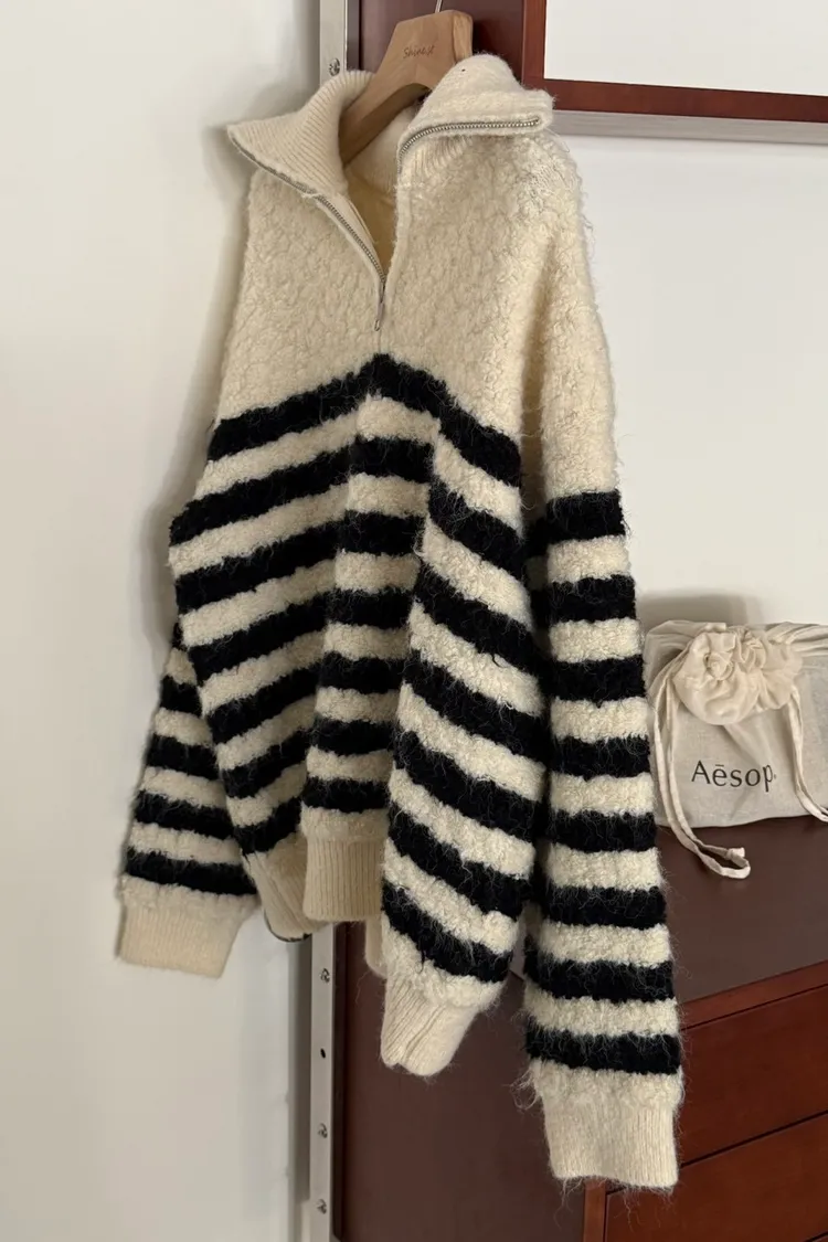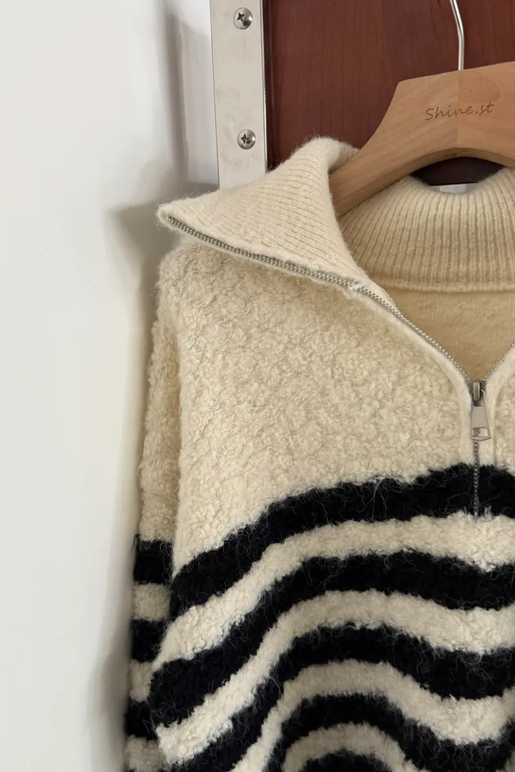 捲捲毛條紋半拉鍊