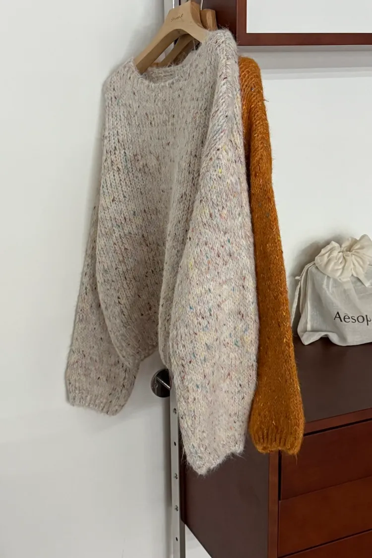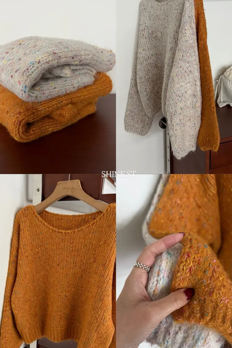 彩色點綴寬領毛衣