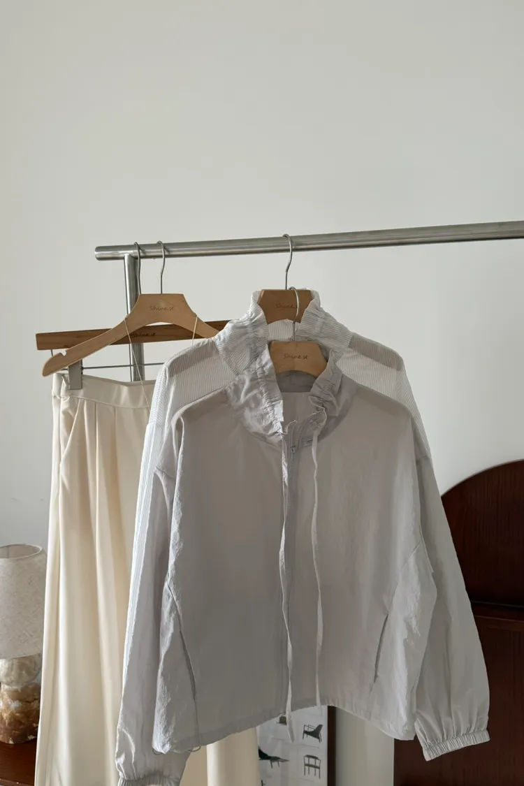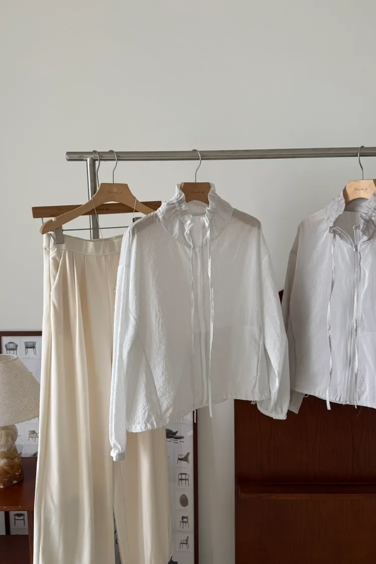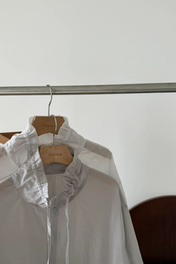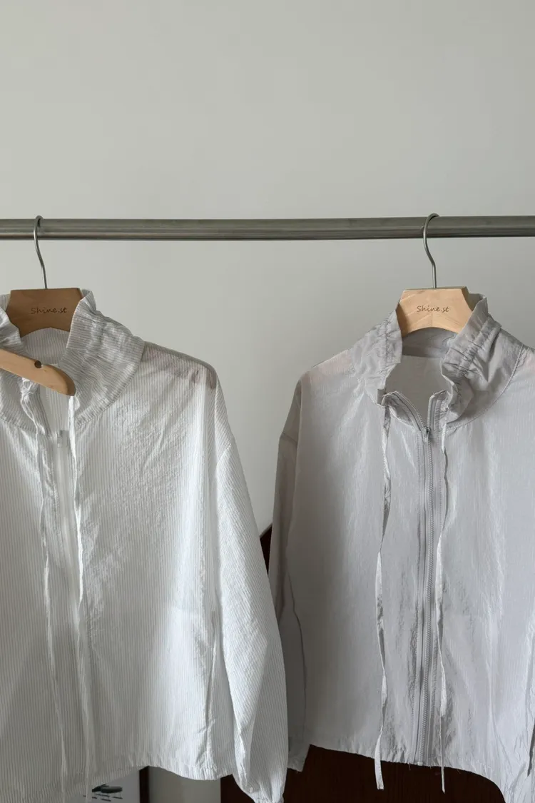 立領抽繩薄透防曬衫