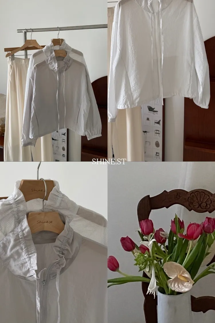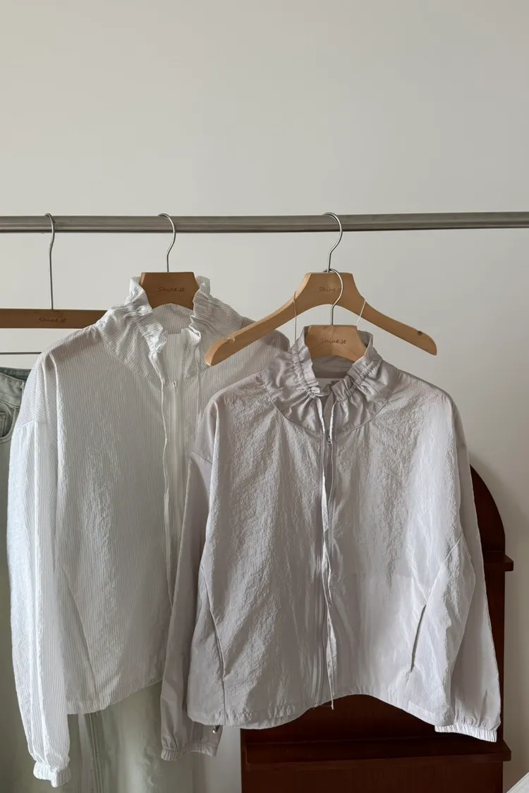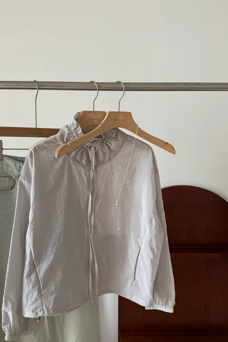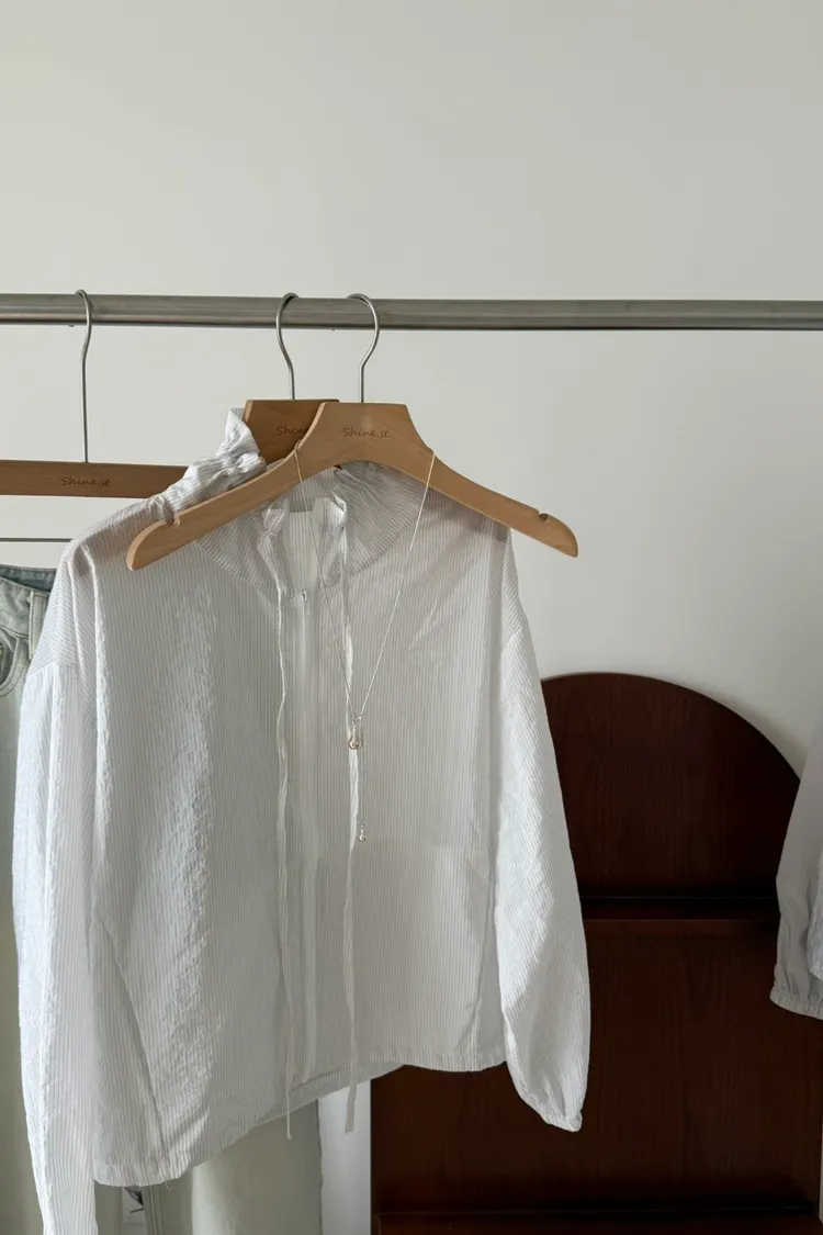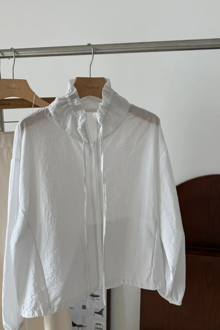 立領抽繩薄透防曬衫