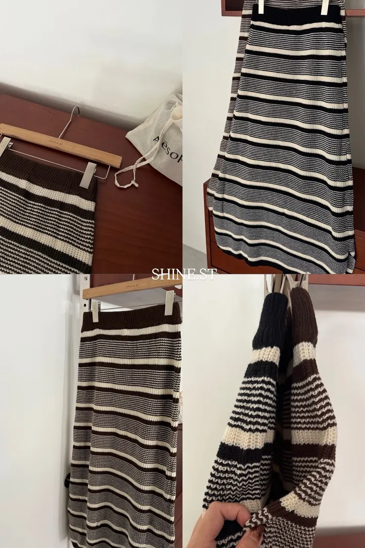 羊毛條紋裙